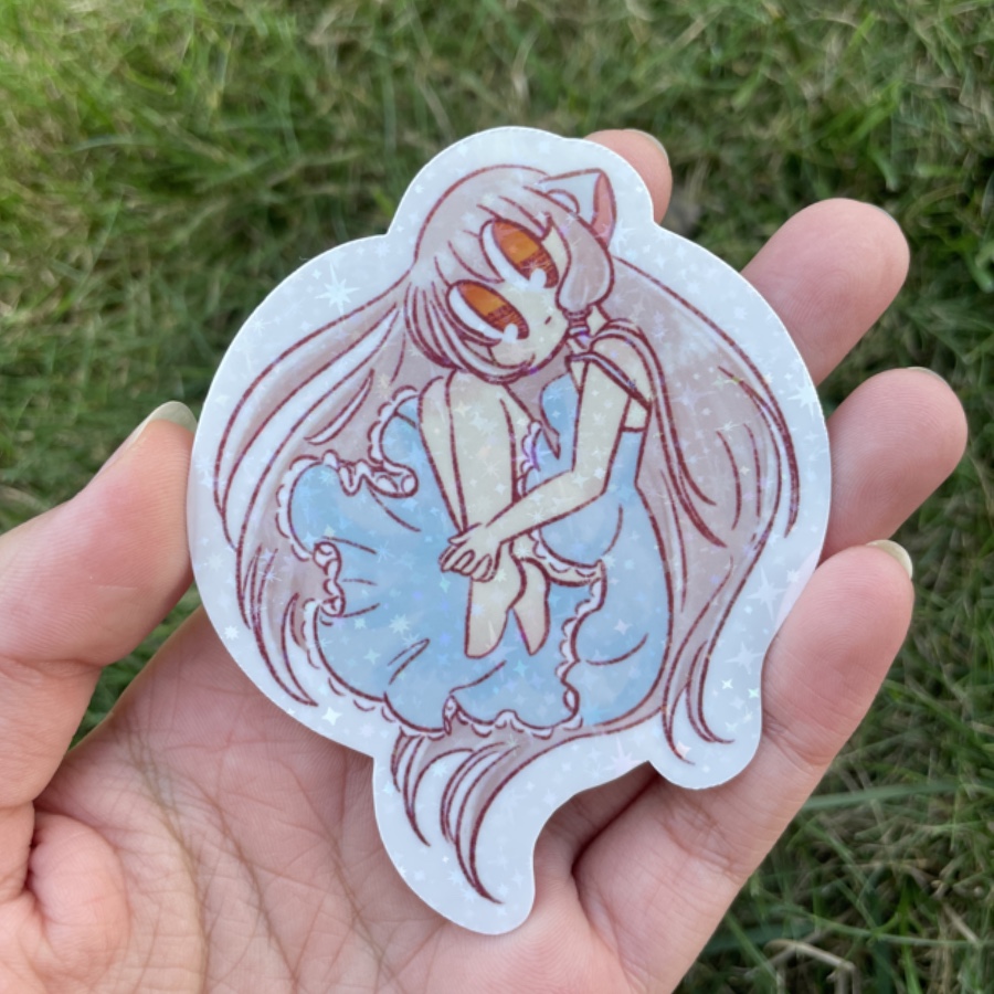 Help Chii find the person just for her with this vinyl waterproof sticker with a sparkle holo finish.