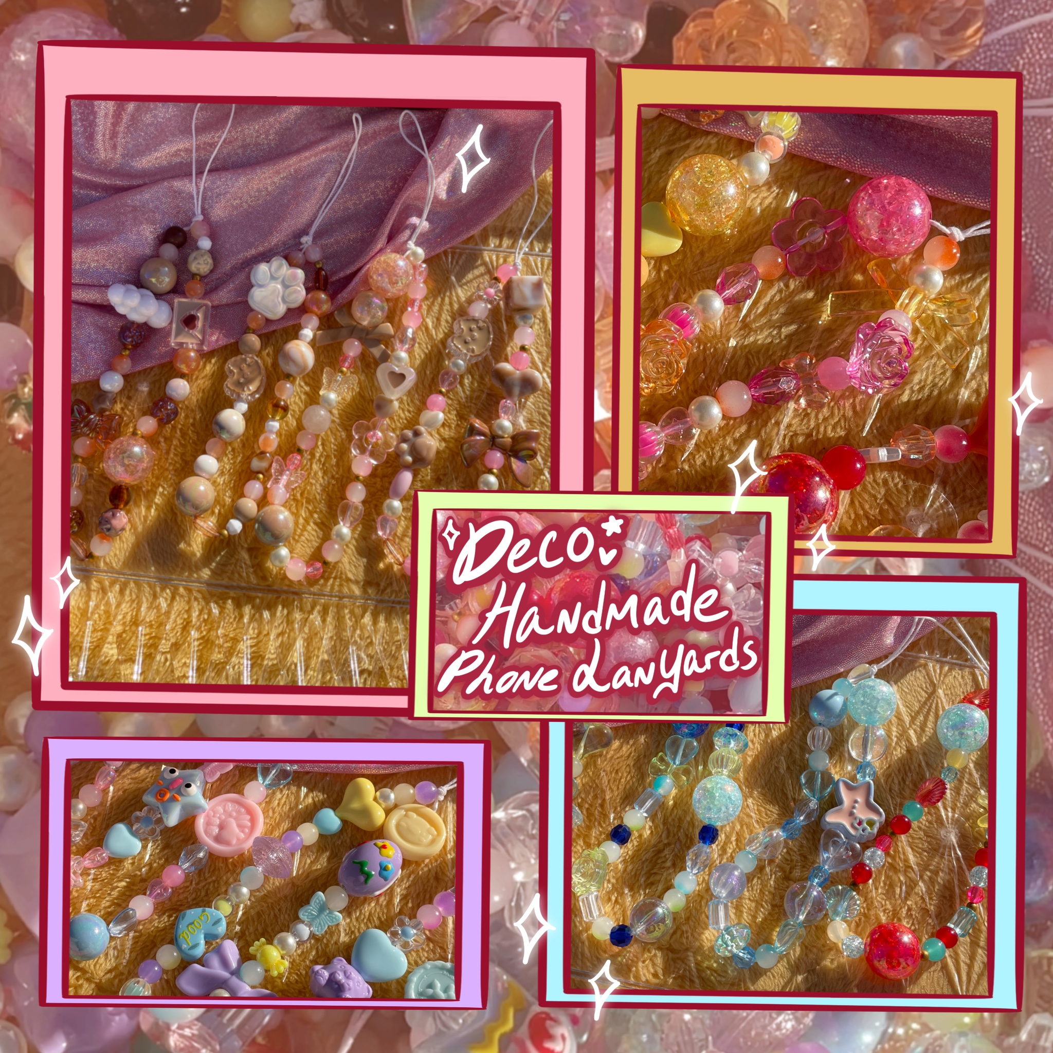 Handmade phone lanyard perfect for holding on to your phone with style. Each phone strap is carefully handmade with unique and cute beads in a range of colors and styles. For customs, include color scheme, theme, and preference of small beads or mix small + big beads.